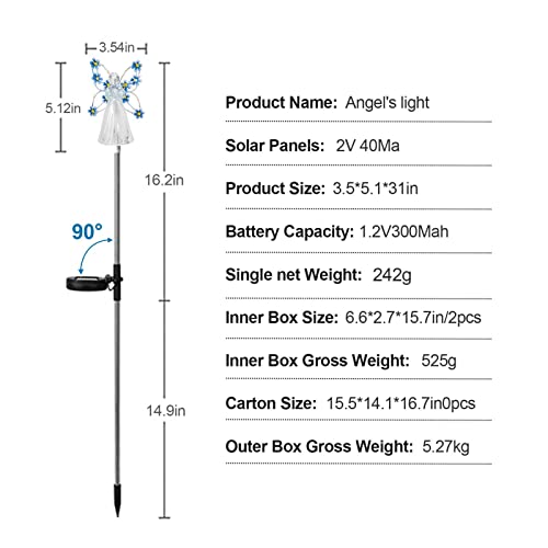 ☻[Decorazione multiuso per cortile con luce solare] Queste luci ad angelo solare possono essere utilizzate come decorazioni esterne per sentieri, marciapiedi, prati, patii, balconi, patii, giardini o ovunque tu voglia.