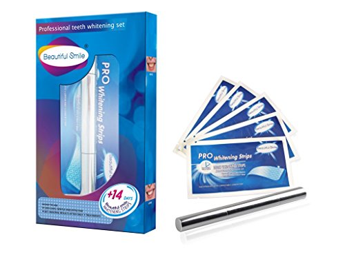 La confezione contiene: 28 strisce, 14 per l'arcata di denti inferiori e 14 per l'arcata di denti superiori + Gratis è la Penna in Gel per uno sbiancamento perfetto dei denti.