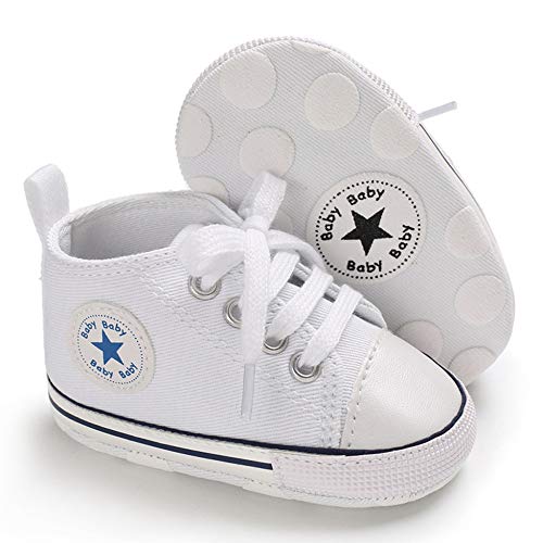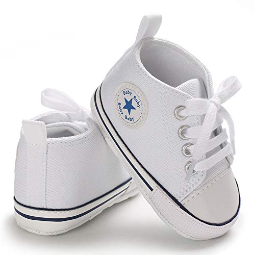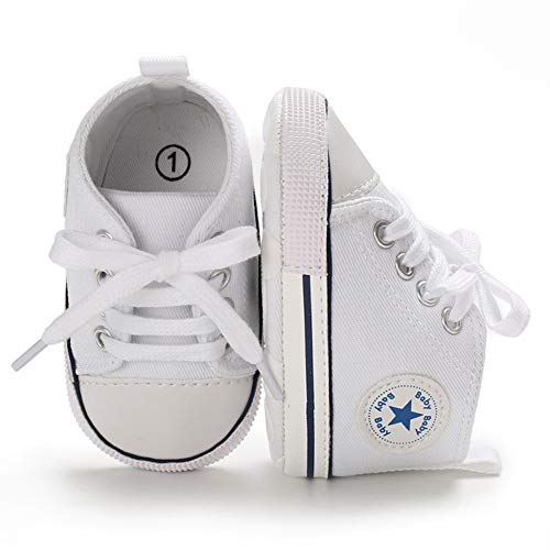 WHITNEY Neonate Ragazzi Scarpe di Tela Morbida Suola Toddler First Walker Infant High-Top Sneakers Caviglia Neonato Presepe,White-12CM(6-12Months)