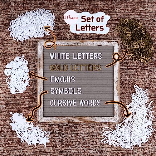 Whoaon rustico graywash barnwood telaio grigio chiaro feltro lettera consiglio 10x10 pollici. pre-cut bianco & gold letters, 2 lettera borse
