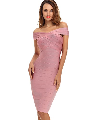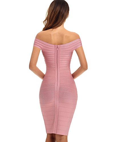 Whoinshop Abito da donna Rayon con spalle scoperte, lunghezza al ginocchio, abito da festa