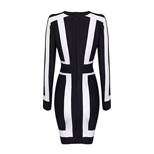 Whoinshop A Maniche Lunghe Donna Nero-Bianco-Grafica-Decorazione-Partito-Benda-Vestito Bodycon
