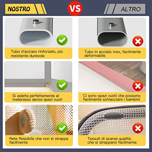 【Extra High】Altezza del design a 10 livelli regolabile da 75cm a 95cm per adattarsi a materassi di diverso spessore. Altezza sufficiente per evitare che il bambino cada dal letto.