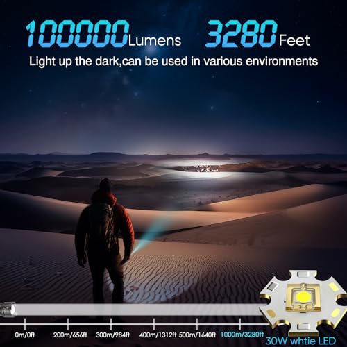 WholeFire Torcia ricaricabile a LED, torcia estremamente luminosa da 30000 lumen, alimentata a batteria, impermeabile IP65 con 10 modalità di illuminazione (include batteria da 5000 mAh)