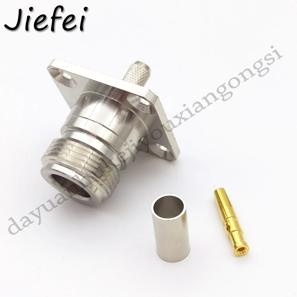 1Pcs Wholesale New N Female Jack RF Coax Connector Crimp RG58 RG142 RG400 LMR195 4-hole panel mount Nickel-plated