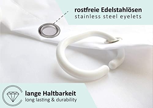 GROMMETS IN ABS ANTIRUGGINE: Rispetto ad altri occhielli per tende da doccia, i nostri occhielli in ABS in grado di resistere all'ammollo d'acqua a lungo termine, antiruggine e non facili da deformare e durevoli