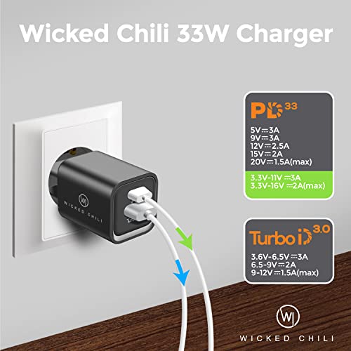 Wicked Chili 33W Dual USB Caricatore con USB-C PD PPS QC4.0+, GaN Caricabatterie Veloce Universale, Compatibile con MagSafe Charger, iPhone 14, 13, 12, 11 (PRO, Max, Plus, Mini) e Apple Watch Ultra