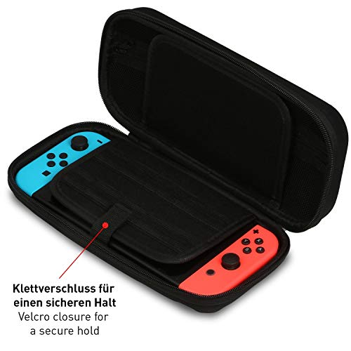 Wicked Chili Custodia per console di giochi Nintendo Switch originale - Custodia rigida con 20 scomparti per riporre giocare ( adatti con scomparto per alimentatore e accessori) nero/Black