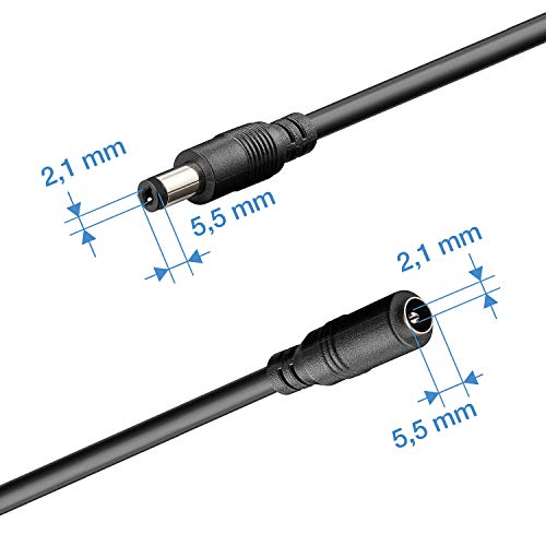 Importante: assicurarsi che la dimensione del jack DC sia compatibile con il dispositivo prima dell'acquisto. Incluso nella fornitura: 1x cavo di prolunga DC (3m / 10ft) per l'alimentazione. Diametro esterno: 5,5mm / Diametro interno: 2,1mm Conduttore interno: CU 18/0,19 mm AWG20 / Carico: max. 12 V, 2 A