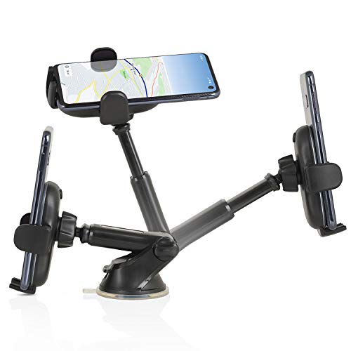 Supporto a ventosa: Supporto per cellulare per auto con super adesivo e aspirazione, braccio telescopico regolabile, snodo sferico a 360°, pulsante di sgancio rapido e piedi espandibile progettato per gli Smartphone Samsung