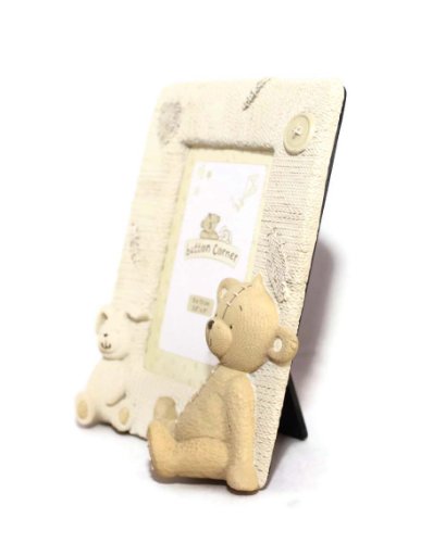 Widdop Bingham - Cornice in resina Button Corner, motivo: orso e coniglietto, 9,5 x 12,7 cm