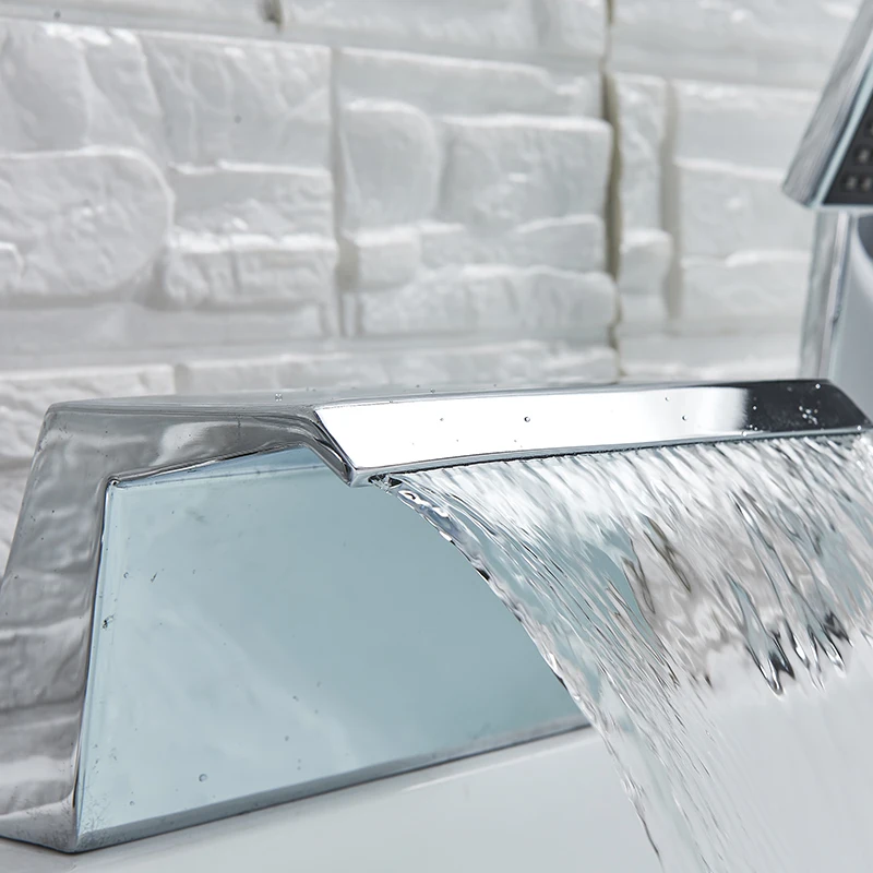 Widespread Waterfall Bathtub Faucet Deck Mounted Tub Sink Mixer Widespread Single Handle with Handshower Tub Crane Tap