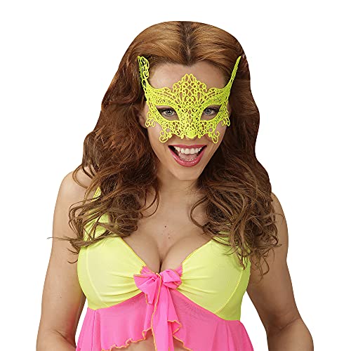 WIDMANN 04745 - Maschera in Pizzo Fluorescente Adulto Donna, Neon, Pride, Carnevale Brasiliano, Feste A Tema, Colore Giallo