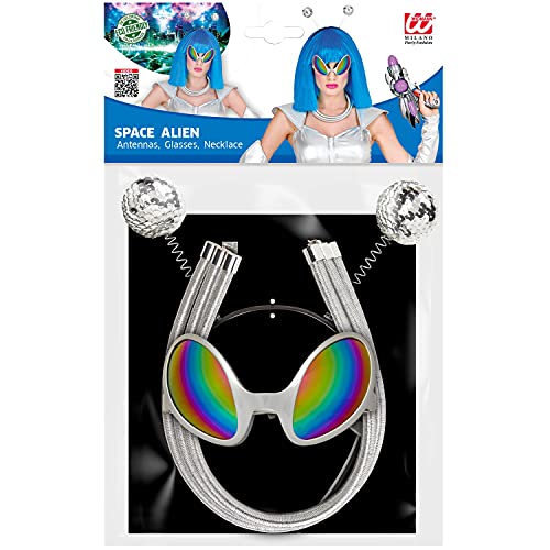 Widmann 68598 - Set di travestimenti Alien, antenna, occhiali, catena, spazio esterno, space, carnevale, feste a tema