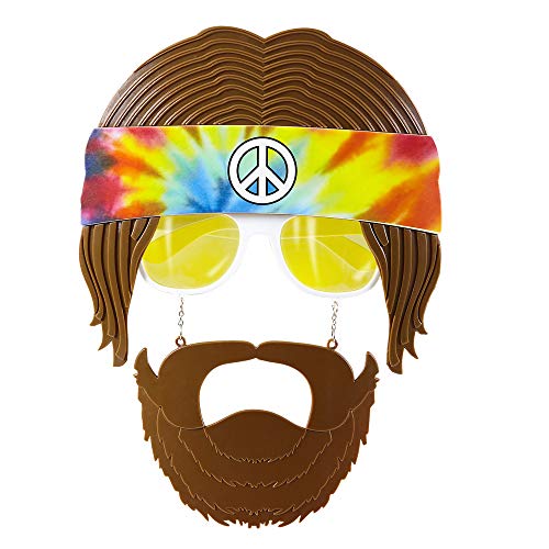 W WIDMANN Adults Hippie Glasses With Beard And Moustache Set Fancy Dress Accessory