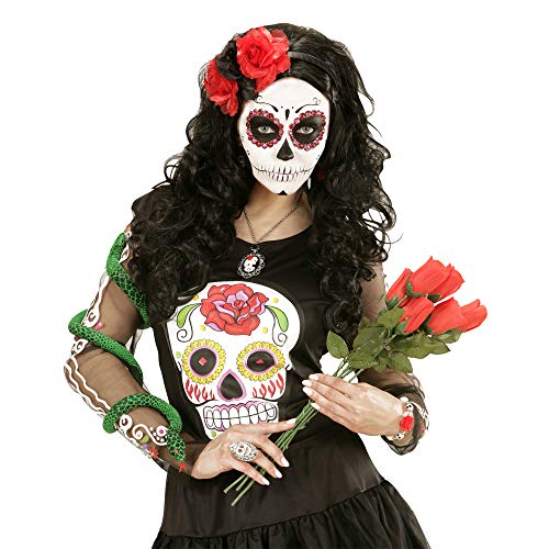 WIDMANN, Cerchietto con 6 Rose Rosse, Teschio Centrale e Velo Donna e Ragazza, Multicolore, taglia unica, 4133