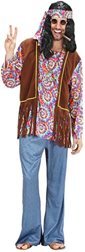 WIDMANN Uomo Hippie Psichedelico Camicia Con Gilet Pantaloni Fascia Per Testa 889