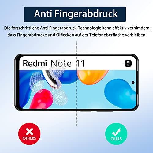 [Durezza 9H / Ultra Resistente] Pellicola protettiva per Xiaomi Redmi Note 11 realizzata in materiale che corrisponde alla durezza standard 9H e offre la migliore protezione da graffi e urti nell'uso quotidiano.