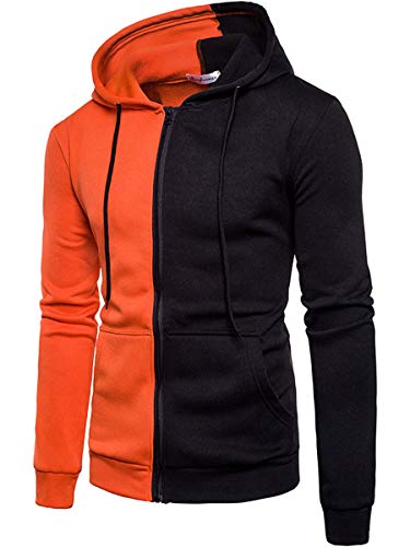 WIEAYUMEI Felpa con cappuccio unisex da uomo e donna, con zip intera e faccina sorridente, a maniche lunghe, con cappuccio Arancione S