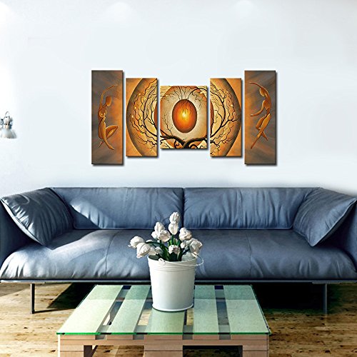 5 pannelli galleria avvolto contemporaneo astratto stampa artistica da parete figure Dancer dipinti su tela pronta da appendere decorazione da parete per decorare la casa. Ogni pannello ha un gancio nero già montato sulla barra in legno per facile da appendere fuori di scatola.