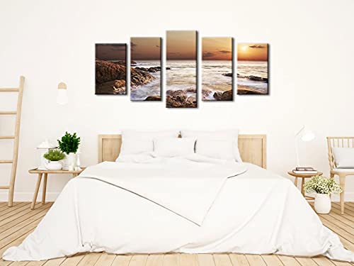 Wieco Art - the Rocky Sea 5 Panels Modern Seascape Giclee Canvas Prints Artwork Sea Beach Pictures Paintings on Canvas Wall Art Ready to Hang for Home and Office Decoration Décor by Wieco Art