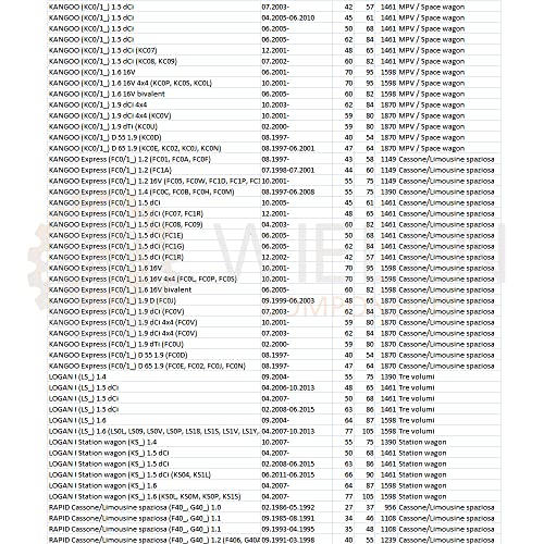 Compatibile con: DACIA DUSTER, LOGAN, SANDERO, RENAULT 19, ESPACE, KANGOO, LOGAN I, RAPID, SUPER 5