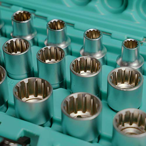 Contenuto: 16 inserti per chiavi a bussola XZN nelle misure 8, 9, 10, 11, 12, 13, 14, 15, 16, 17, 18, 19, 20, 21, 22 e 24 mm.