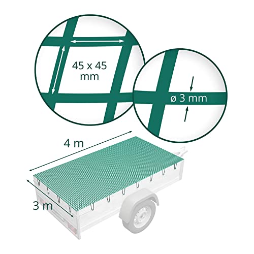 Wiesenfield Telone per Rimorchio Rete Di Sicurezza Copertura Elastica WIE-NET-4 (4 x 3 m, Maglie 45 x 45 cm, Verde)