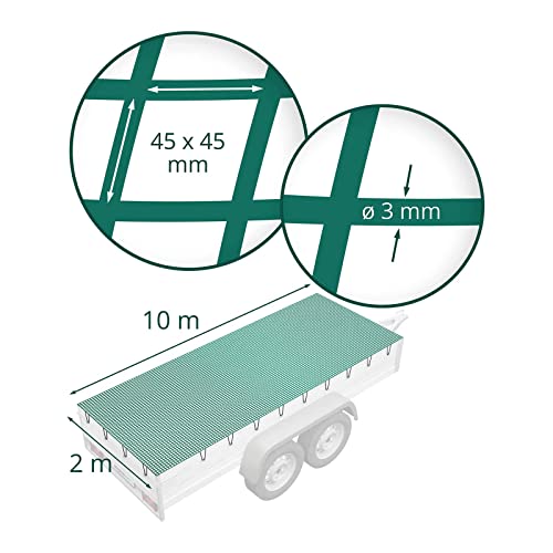 Wiesenfield Telone per Rimorchio Rete Di Sicurezza Copertura ElasticaWIE-NET-2 (2 x 10 m, Maglie 10 x 10 cm, Verde)