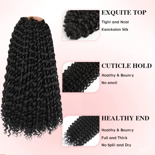 WIGENIUS - 8 extension di treccine corte di capelli neri da 30,5 cm, sintetiche, capelli ondulati in stile water wave, per dreadlock finti (1B)