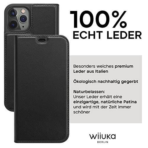 WIIUKA - Custodia in pelle per iPhone 12/12 Pro, con scomparto per carte di credito, ultra sottile, con funzione di supporto, colore: Nero