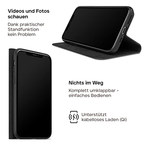 WIIUKA Custodia in pelle per iPhone 12 Pro Max, con scomparto per carte di credito, extra sottile, in pelle di alta qualità, con funzione di supporto, colore: nero