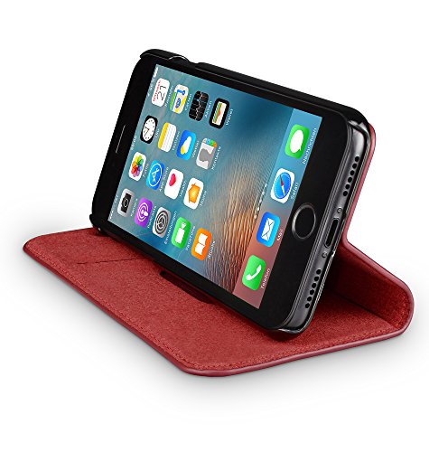 Wiiuka Custodia Travel Nature in Nappa Vera Pelle per Apple iPhone 8 Plus e iPhone 7 Plus Premium Design Sottile Protezione Color Rosso con Slot per schede