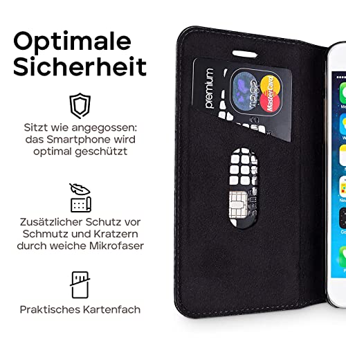 WIIUKA custodia "TRAVEL" in vera pelle per Apple iPhone 6 Plus e iPhone 6S Plus - Premium design a portafoglio, sottile protezione color nero con slot per schede