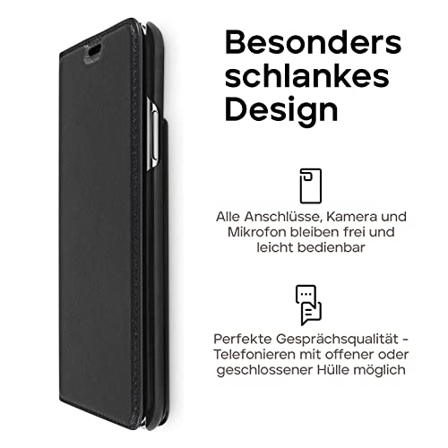 WIIUKA custodia "TRAVEL" in vera pelle per Apple iPhone X e iPhone XS - Premium design a portafoglio, sottile protezione color nero con slot per schede