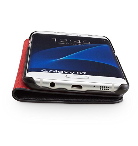 Wiiuka Custodia Travel in Vera Pelle per Samsung Galaxy S7 Premium Design Sottile Protezione Color Nero Rosso con Slot per schede