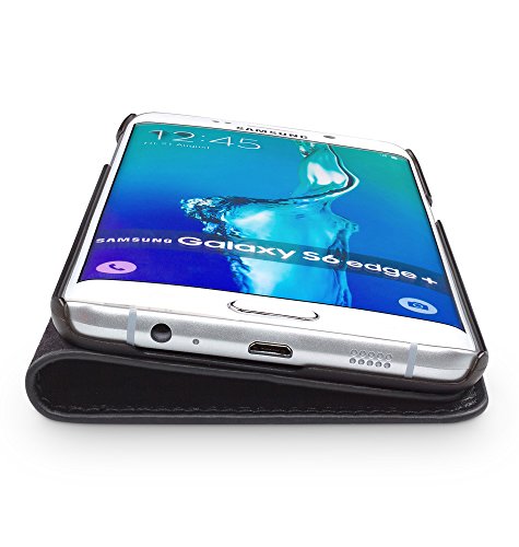 Wiiuka Custodia Travel in Vera Pelle per Samsung Galaxy S6 Edge Plus Premium Design Sottile Protezione Color Nero con Slot per schede