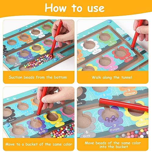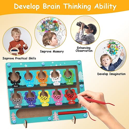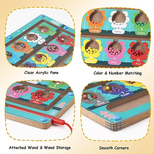 【Materiali di qualità premium】Il bordo magnetico del labirinto del colore e del numero è realizzato in legno naturale, macchiato con vernice atossica a base d'acqua, molto sicuro. La superficie del labirinto è lucida e priva di sbavature. La tavola acrilica avvolge tutto nel labirinto. Bordi lisci e materiali robusti assicureranno giocattoli sicuri per 3 4 5 anni ragazzi e ragazze.
