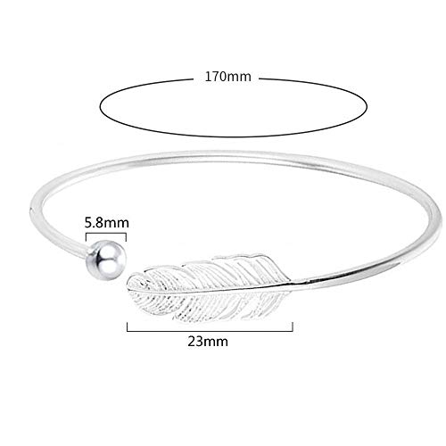 WikiMiu Bracciali da donna, argento sterling 925, bracciale aperto in argento, la forma è una piuma, stile etnico boemo