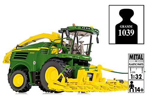 Wiking 077832 John Deere 8500i, modello, scala 1:32, metallo/plastica, a partire dai 14 anni, molte funzioni, unità Pick-Up e inserto di mais completamente funzionante, tubo di espulsione regolabile
