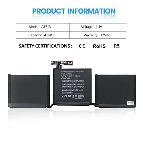 Wikinu A1713 Batteria per MacBook Pro 13 pollici A1708 Late 2016 Mid 2017 (EMC 2978 3164), A2171 A2159 (2019) A2289 (2020) A2338 (2020) 4781mAh/54.5Wh