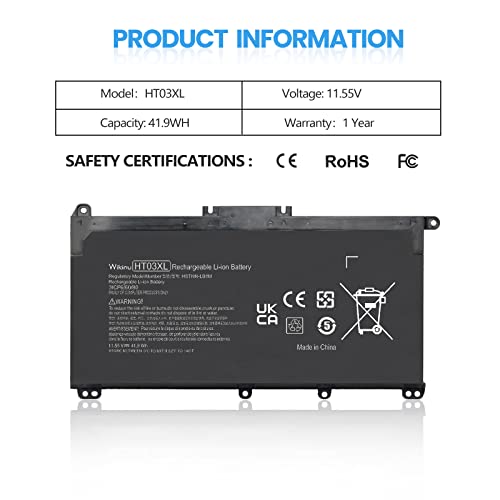 Wikinu New HT03XL L11119-855 Batteria per HP Pavilion 14-CE 14-CF 14-DF 15-CS 15-CW 15-DA 15-DB 15-DW 17-BY 17-CA Serie 15-DA0012DX 15-CS0064ST L11421-542 L11421-2C2 HSTNN-LB8M HSTNN-DB8R