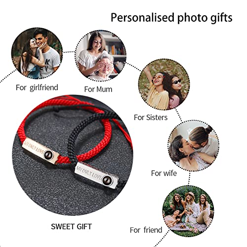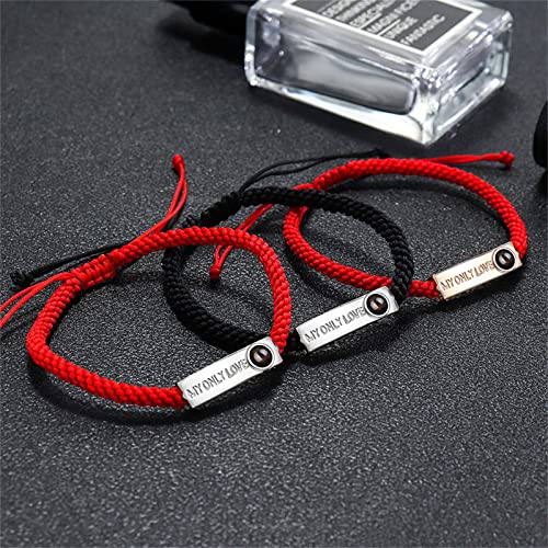 Wikkeny Proiezione Personalizzata Foto Braccialetti, 100 Lingue Ti Amo Bracciale in Argento Sterling 925 Bracciali, Unica Anniversario Matrimonio Compleanno RegaloArgento in Bianco e Nero,Nero