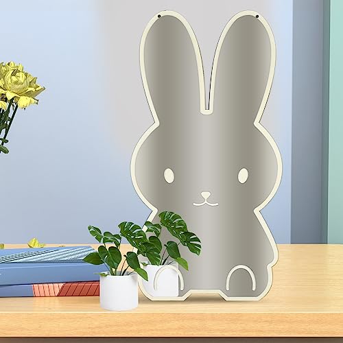 Wiksite Specchio da parete per cameretta dei bambini, in acrilico, motivo coniglietto, specchio con orso, decorazione da parete in legno, decorazione per la casa, artigianato e coniglio