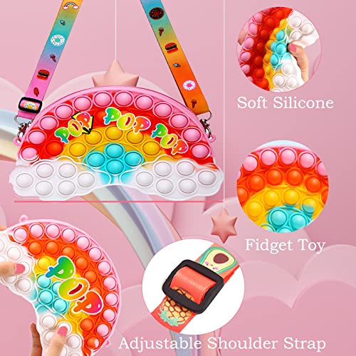 Wilbeva Pop Fidget Toys - Borsa a tracolla per ragazze e donne, per alleviare lo stress, piccoli giocattoli sensoriali colorati in silicone