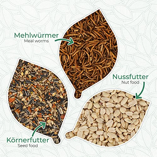 APPROPRIATO: i fori di ventilazione nella mangiatoia per uccelli assicurano una circolazione d'aria costante - possono essere riempiti con mangime per cereali, arachidi rotte e vermi della farina