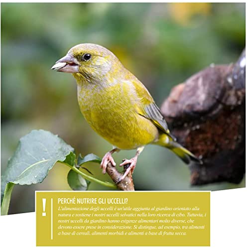Alimentazione Varia: La casetta mangime uccelli selvatici è composta da 3 colonne e 2 ciotoline, in cui puoi inserire diversi tipi di mangime. Riceverai anche una guida scritta da esperti, con consigli per un'alimentazione equilibrata e nutriente