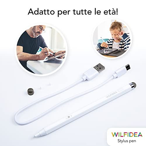 Wilfidea Penna Per Tablet e Ipad Touch Screen Universale Capacitiva Punta Fine, Pennino per Scrivere Disegno Precisione Usb Ricaricabile Smartphone Computer Compatibile Apple Android Microsoft Samsung