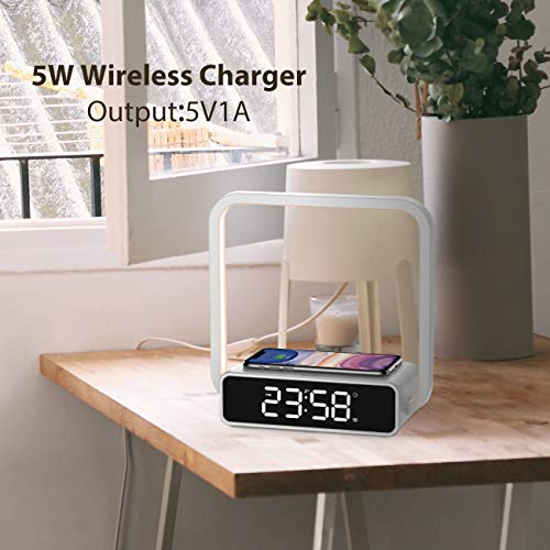 【Lampada LED multifunzionale】 Questa lampada integra luce e sveglia, sveglia con funzione snooze, caricabatterie wireless Qi e lampada da comodino a LED tutto in uno, ideale per essere la tua compagna di vita.
