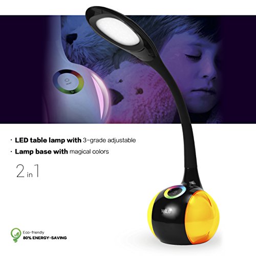 WILIT T3 Lampada da Tavolo LED Regolabile con 256 Luci Multicolore RGB e 34 LEDs, 3 Livelli Dimmerabili, Lampada da Comodino per Bambini con a collo d'oca, Controllo Tattile, 5W, Nero